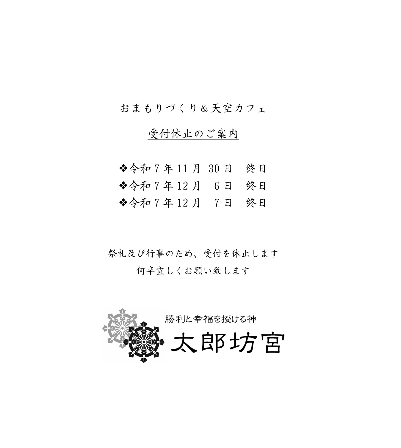 ❖1月13日まで『初もうで特別対応』を行います。